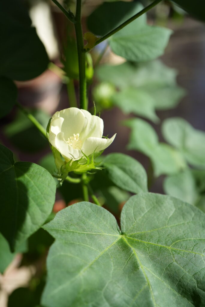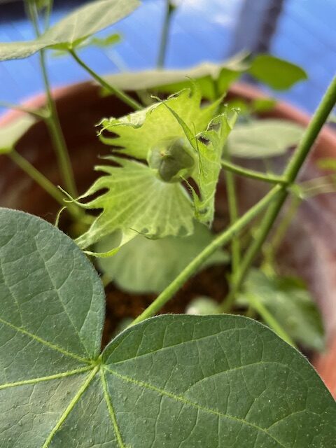 これからどのようにコットンになるのか? 声がけしながら水をあげてます